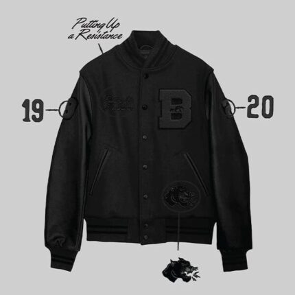 The jacket features naked cow leather sleeves and hand-detailed signature Chenille B patch, adding a touch of sophistication and uniqueness. Embroidery on the front and back adds intricate detail, while the two-tone acrylic knit rib enhances the jacket’s timeless appeal. With a unisex fit and the option to size up for a looser, casual look, this jacket is perfect for anyone looking to make a statement while staying comfortable and stylish.