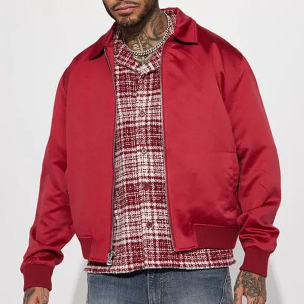 The burgundy satin varsity bomber jacket offers a sophisticated twist on the classic style. The rich burgundy hue adds depth and warmth, making it a versatile choice for both casual and dressed-up looks. The satin fabric gives it a luxurious sheen, elevating its overall aesthetic.